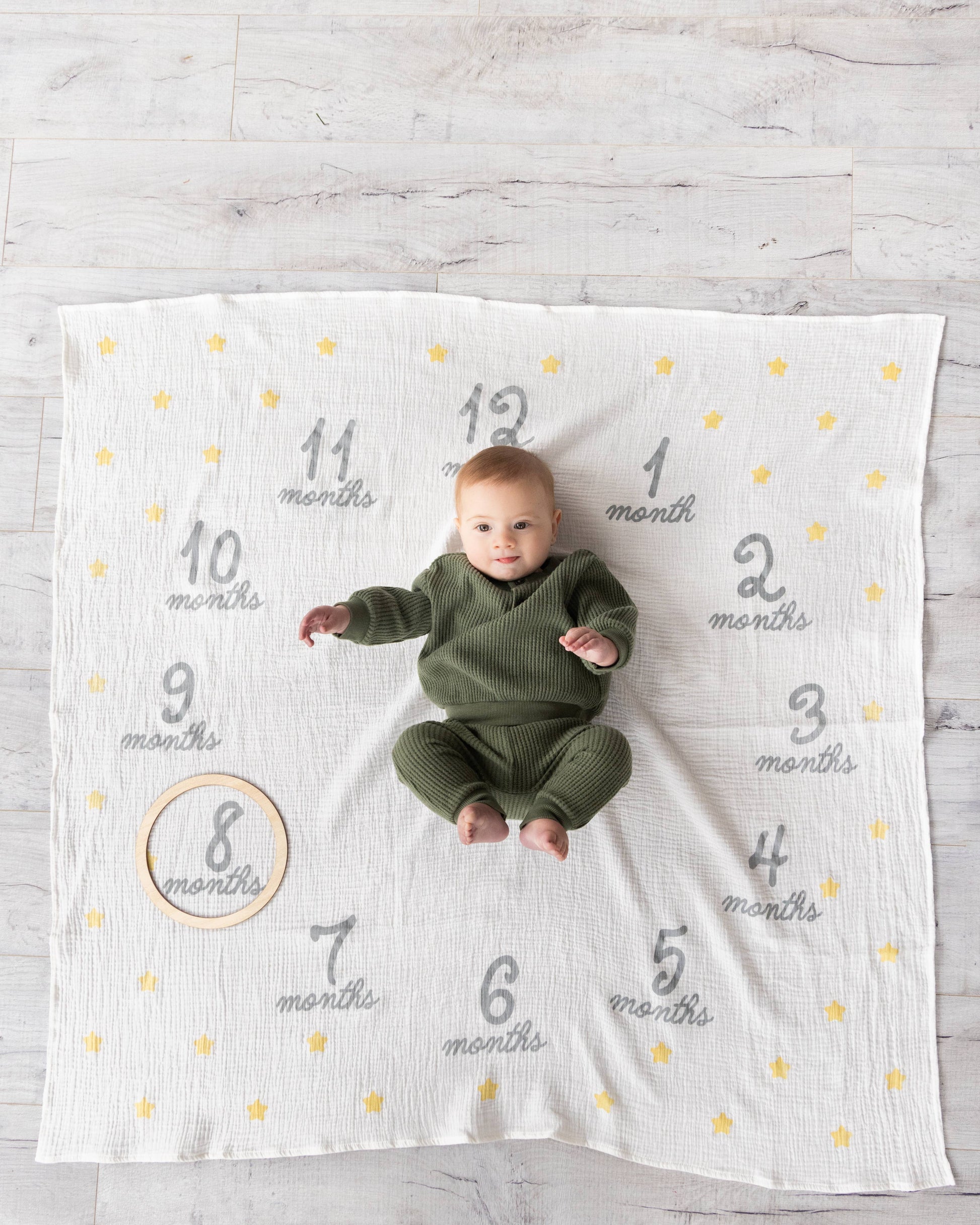 · Monthly Milestone Blanket: Place your baby girl or baby boy in the center of the large circle with months one through twelve, creating an organized layout for capturing photos. Our baby keepsake blanket is crafted from ultra-soft muslin fabric, cozy surface for your little one.